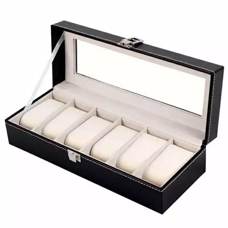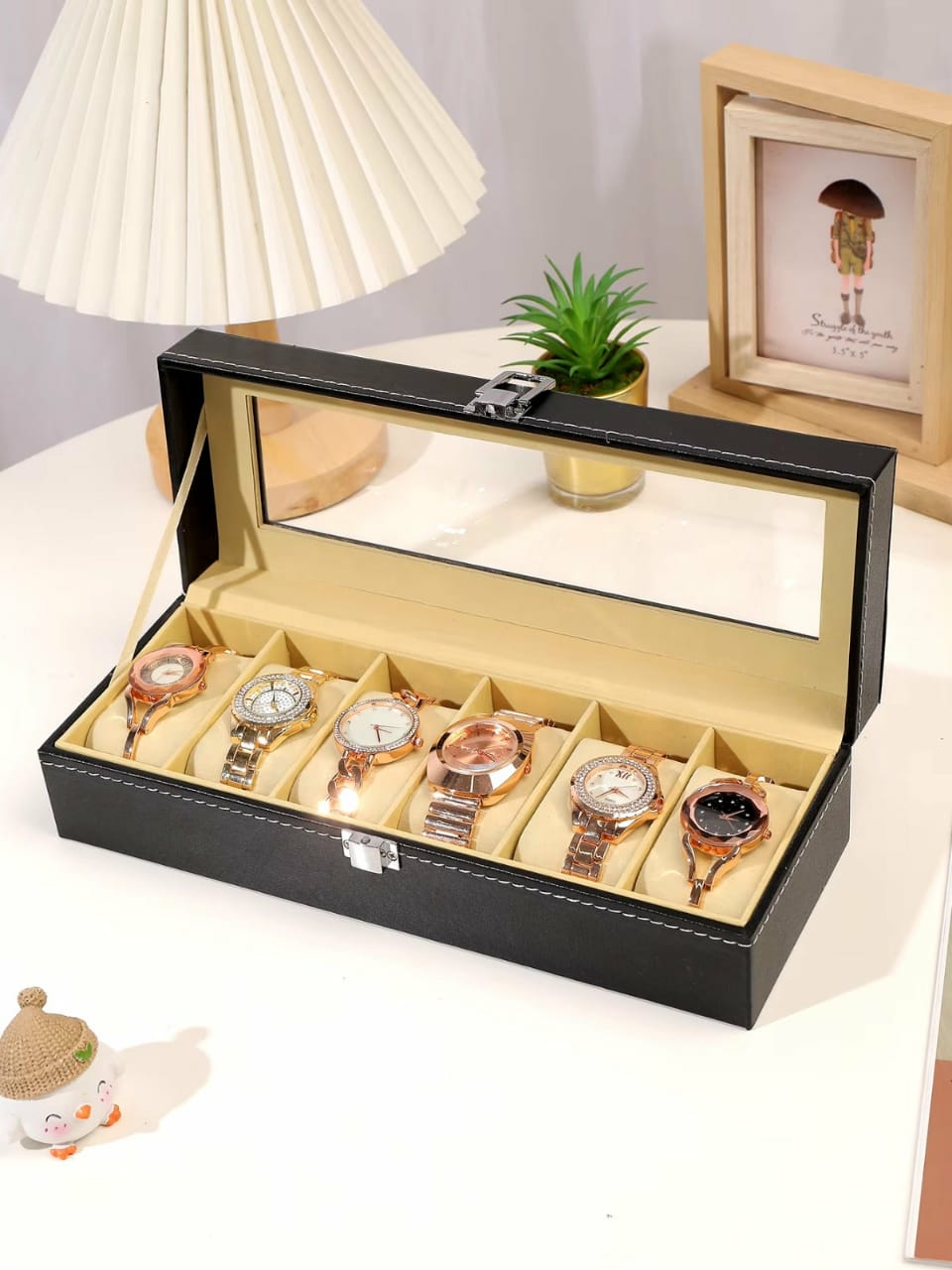 Keep your timepieces safe and stylishly displayed with the 6-Slot Watch Organizer Box, crafted with elegance and precision for true watch lovers. Made from high-quality materials and finished with a sleek design, this organizer features soft interior cushions to protect your watches from scratches and dust. The box packing adds a premium touch, making it perfect for both personal use and gifting. Compact, durable, and classy β itβs the ideal storage solution to showcase your collection in style.