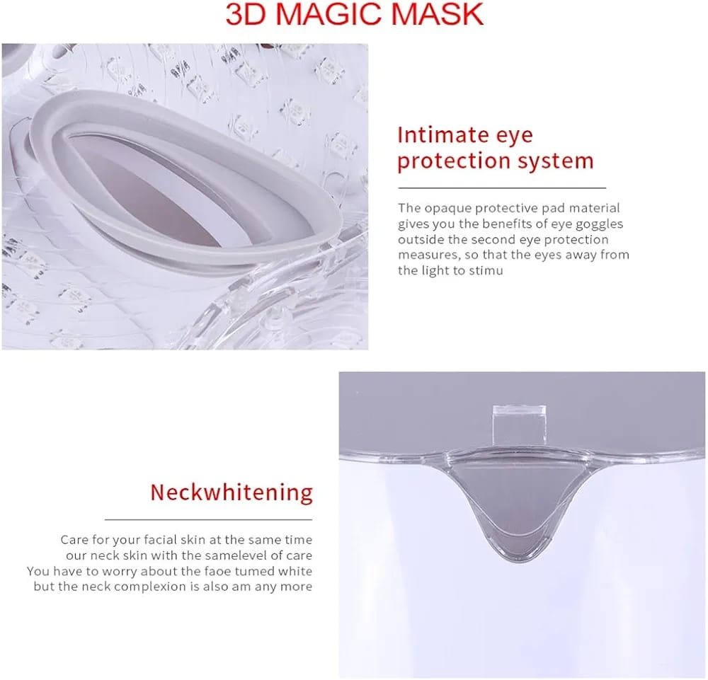 Rejuvenate your skin with the 7 Colors LED Face Mask for Facial and Neck Therapy, an advanced beauty device designed to target multiple skin concerns using light photon technology. Each LED color serves a unique purpose — from reducing wrinkles and fine lines to improving skin tone, minimizing acne, and promoting collagen production. The mask’s ergonomic design ensures full facial and neck coverage, providing a relaxing, spa-like experience at home. Safe, non-invasive, and suitable for all skin types, this LED mask is your ultimate solution for achieving youthful, glowing, and healthy skin.
