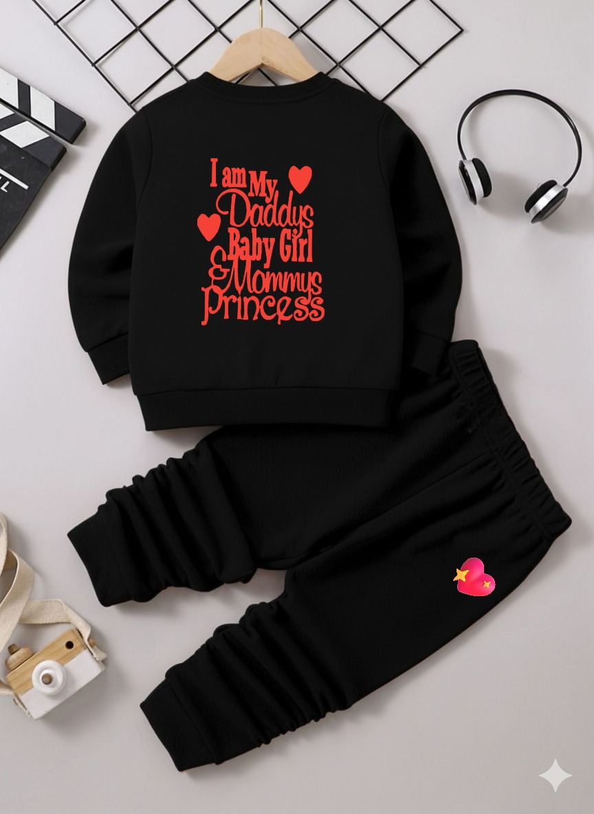Keep your little one cozy and stylish this winter with the Black Fleece Sweatshirt Set for Baby Girls, crafted from high-quality fleece fabric for exceptional warmth and comfort. This adorable outfit includes a soft sweatshirt and matching trousers, making it perfect for chilly days and everyday wear. Designed for a snug yet flexible fit, it’s available in sizes 1–8 years with adjustable trouser lengths (as per order). Soft, durable, and easy to wash, this sweatshirt set is a must-have for your baby girl’s winter wardrobe.