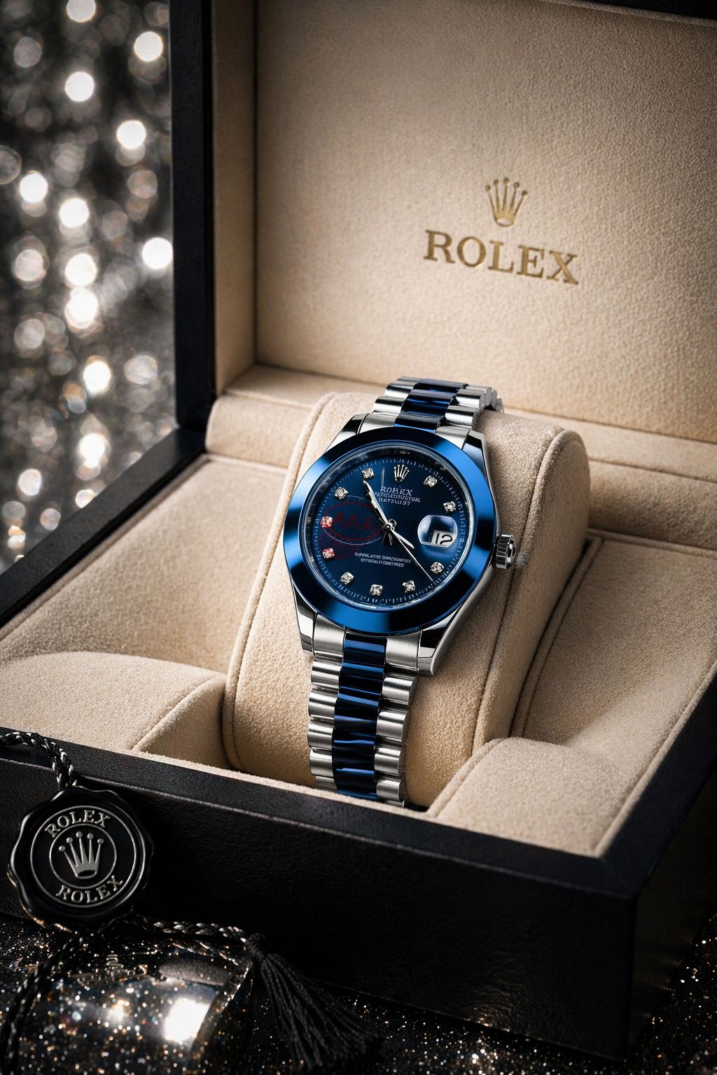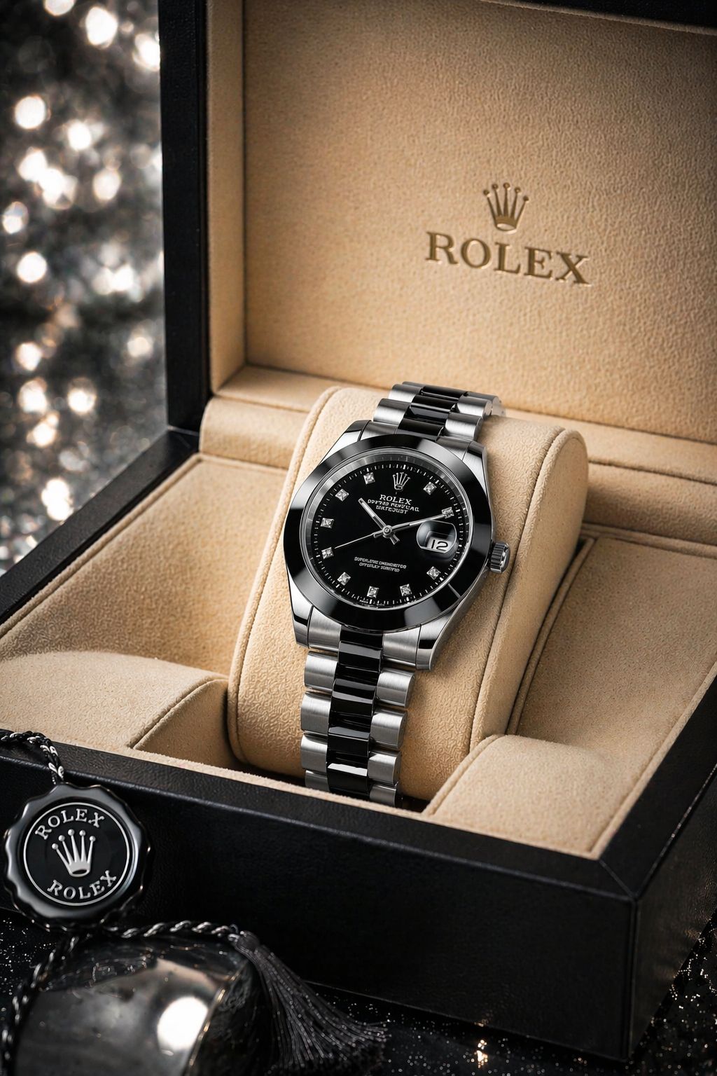 Powered by a high-precision automatic movement, the Datejust ensures reliable timekeeping with Rolex’s renowned craftsmanship and attention to detail. The iconic date display at 3 o’clock, enhanced by the Cyclops lens, provides instant legibility while maintaining the model’s classic design language.
